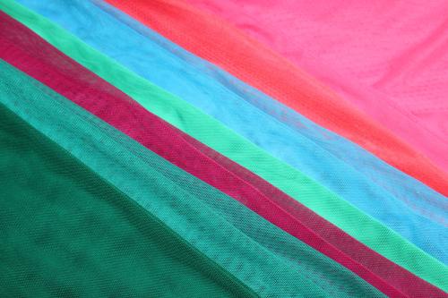 - жесткая сетка или фатин – производится из полиэстера, ткань плотная с мелкой ячеистой структурой, поэтому хорошо держит форму, фатин используют для пошива пышных юбок и подъюбников, сценических нарядов, декора помещений, поделок и т.д.;