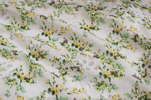 Хлопок ткань 7465/D3/C#3 Принт Вышивка Перфорация Цветы