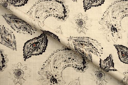 Штапель ткань 7532/D27/C#1 Принт Огурец Цветы