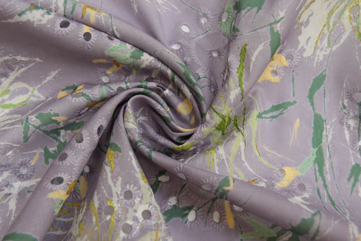 Хлопок ткань 7462/D1/C#2 Принт Вышивка Перфорация Цветы