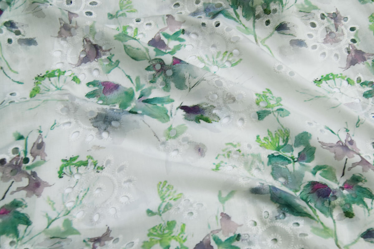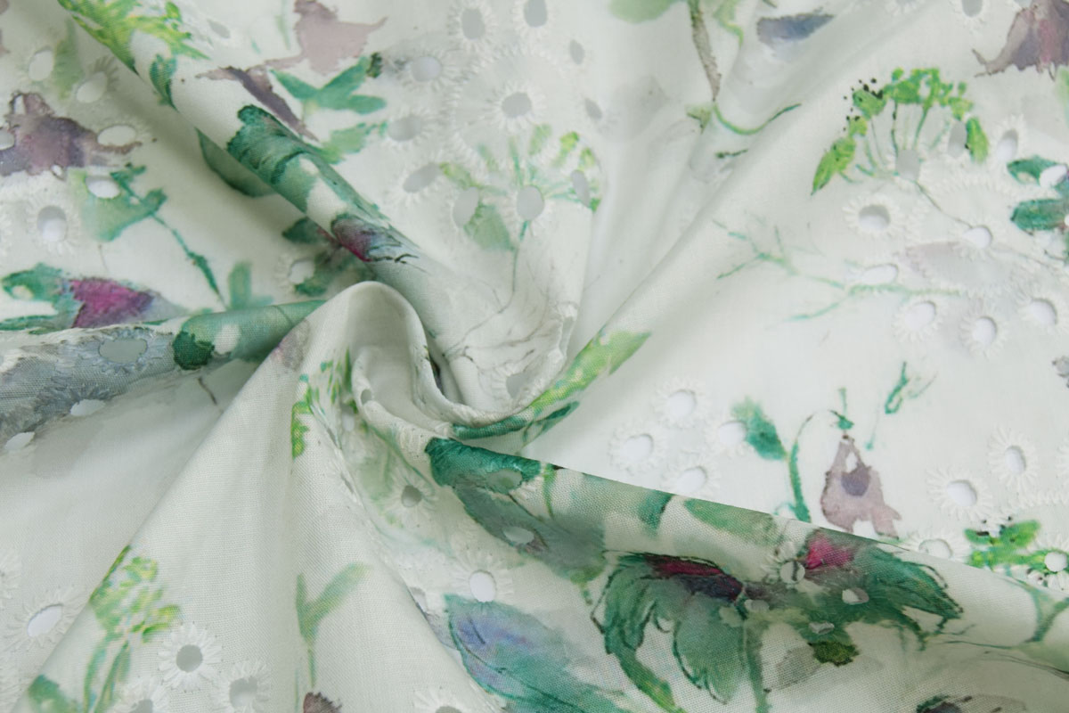 Хлопок ткань 7465/D2/C#3 Принт Вышивка Перфорация Цветы