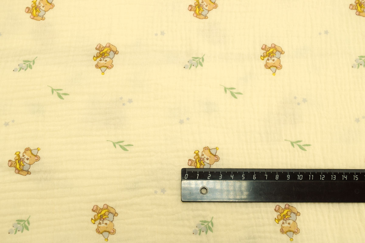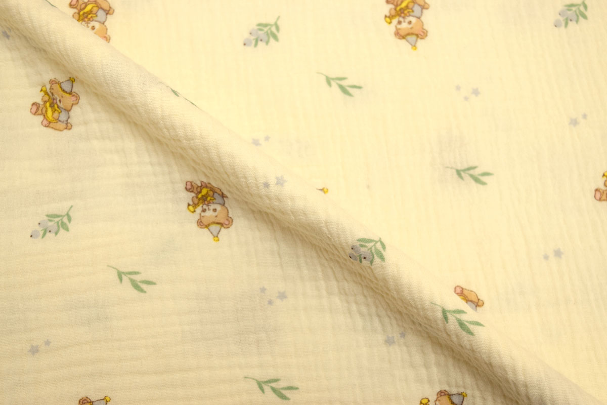 Благодаря плотности 120 г/м2 и ширине 135 см ткань удобно кроится, красиво струится и создает элегантный силуэт, подчеркивая женственность изделий. Кремовый цвет и Детский рисунок позволяют создавать стильные и актуальные модели для повседневного и делового гардероба.
