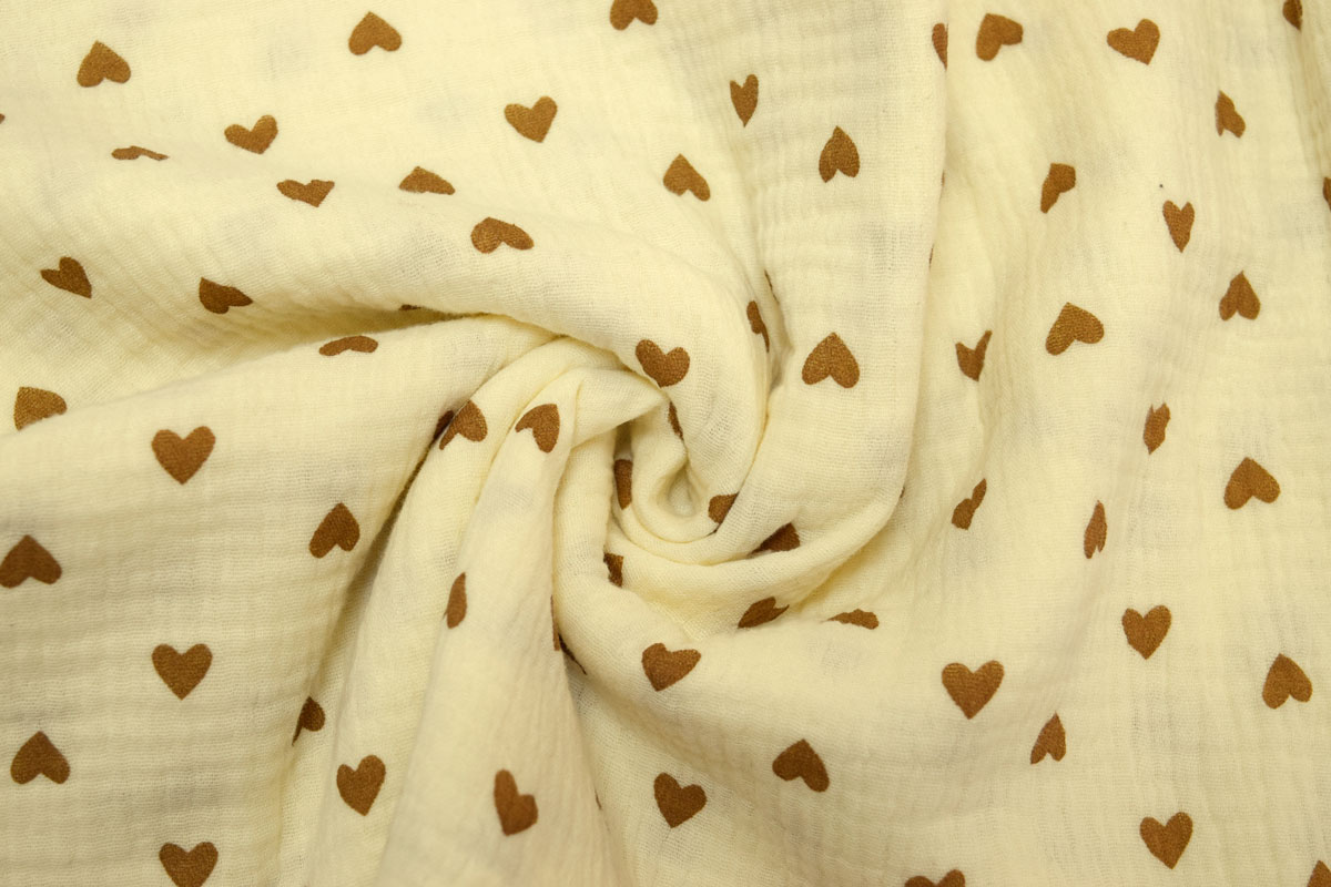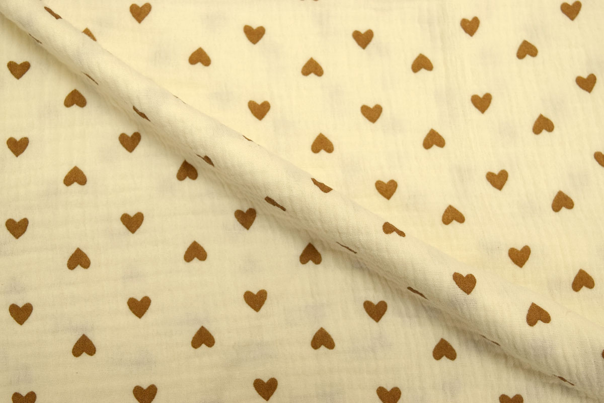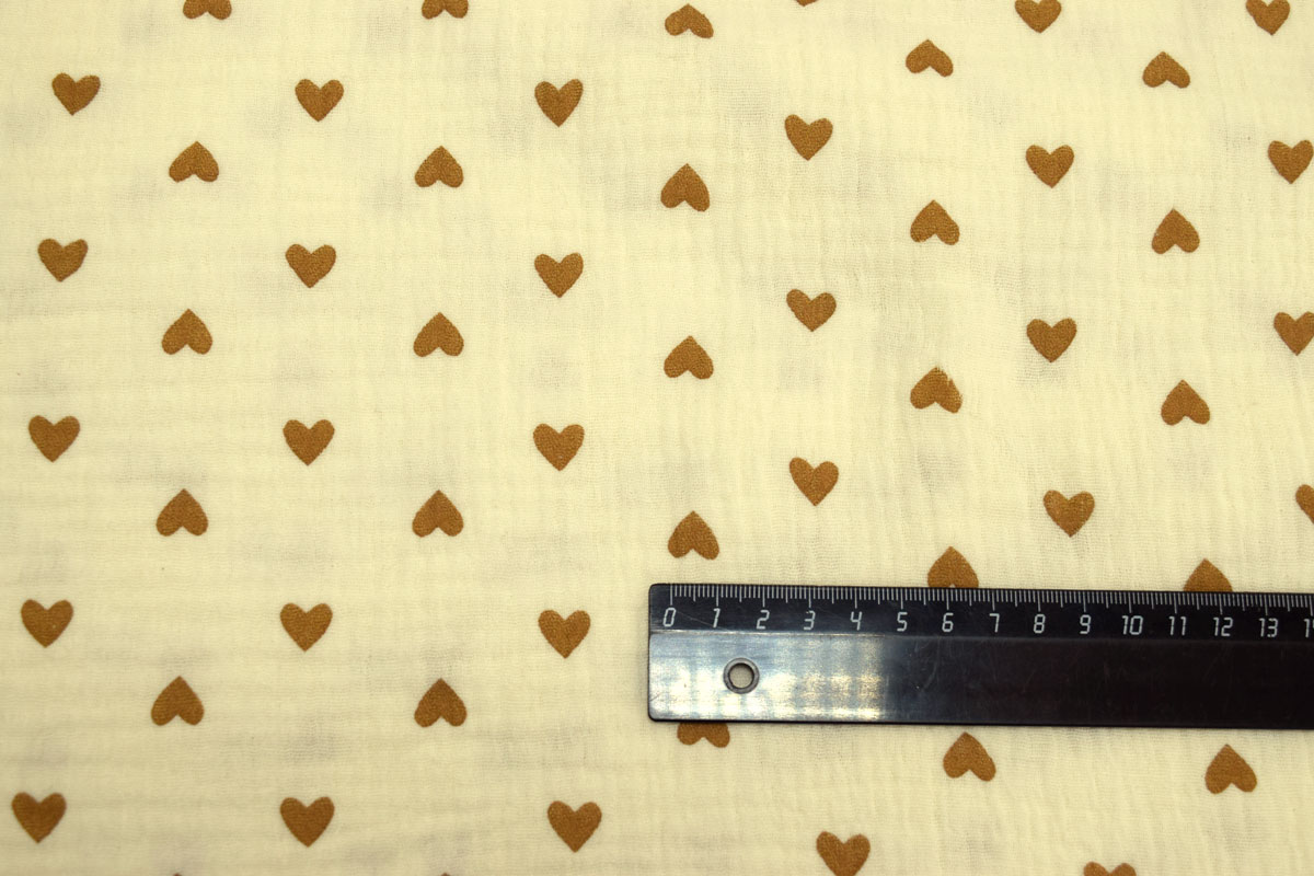 Благодаря плотности 120 г/м2 и ширине 135 см ткань удобно кроится, красиво струится и создает элегантный силуэт, подчеркивая женственность изделий. Бежевый цвет и Сердце рисунок позволяют создавать стильные и актуальные модели для повседневного и делового гардероба.