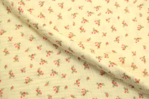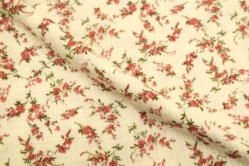 Благодаря плотности 120 г/м2 и ширине 135 см ткань удобно кроится, красиво струится и создает элегантный силуэт, подчеркивая женственность изделий. Кремовый цвет и Цветы рисунок позволяют создавать стильные и актуальные модели для повседневного и делового гардероба.