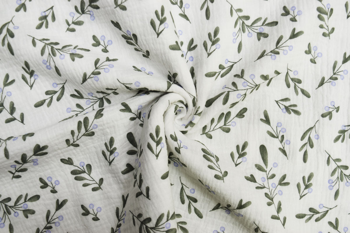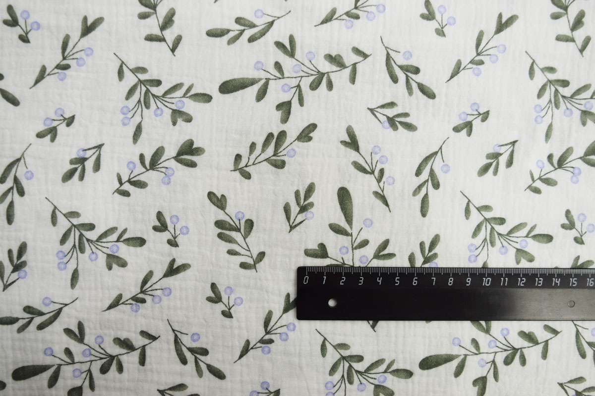 Блузочная ткань 7569/D16/C#2 Принт Крэш Муслин Листья Ягоды Вы можете купить оптом, оформив заказ самостоятельно на сайте или позвонив по телефону +7 (495) 175-07-06.