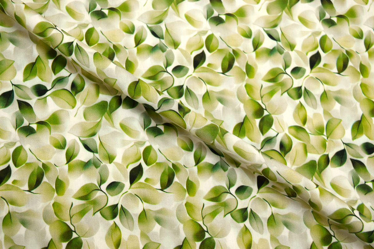 Штапель ткань 12473/D18/C#1 Принт Листья